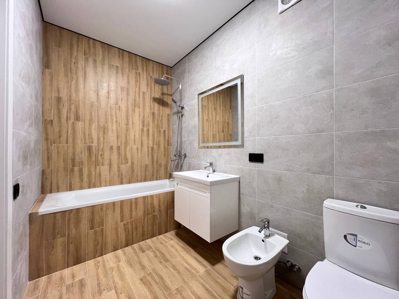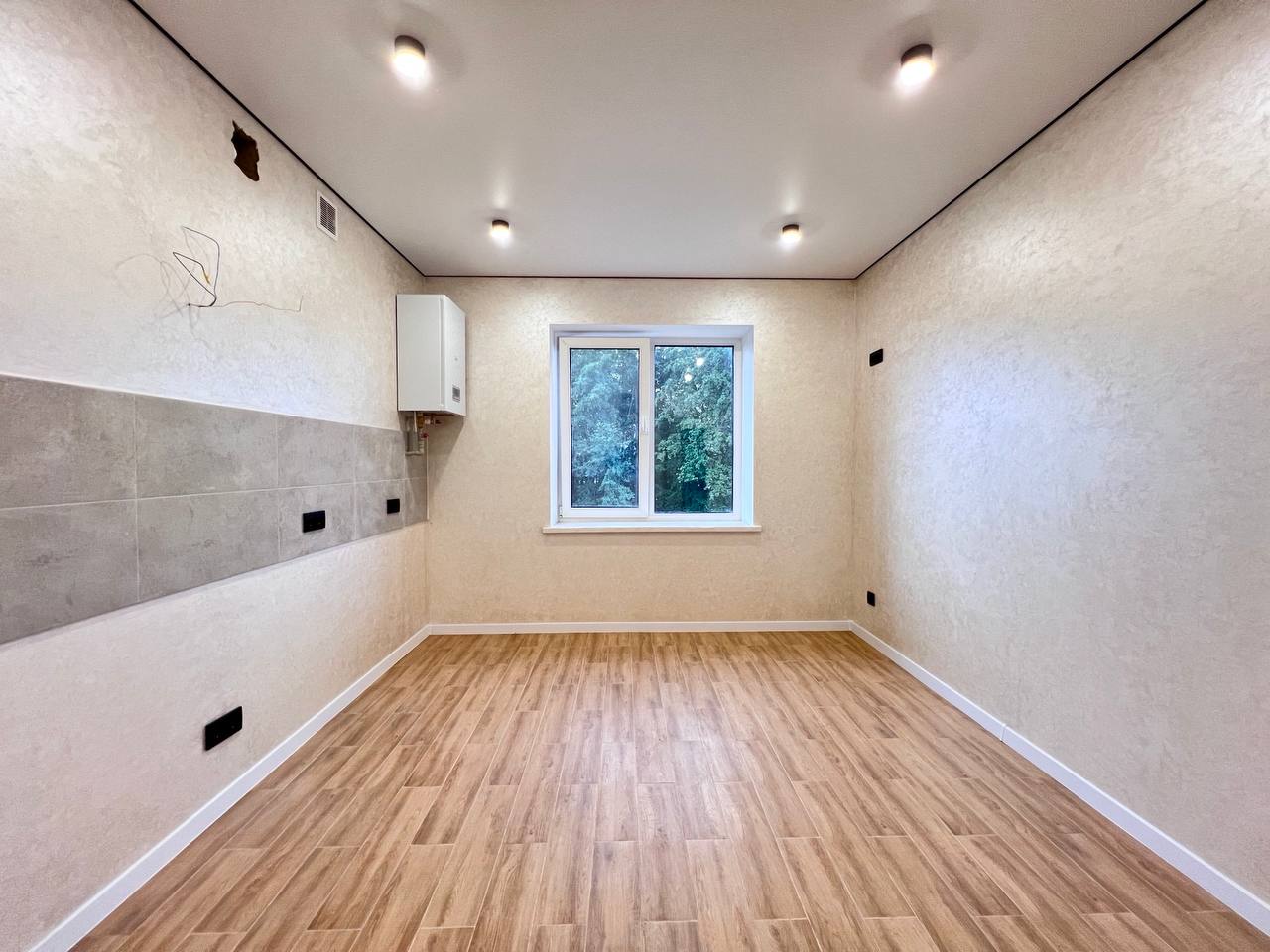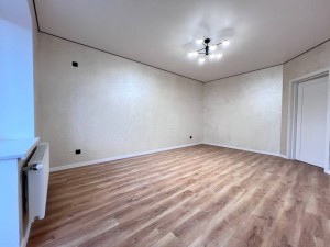 Простора, світла квартира із якісним ремонтом, заходиться на 3/3 поверсі, будинок побудований з цегли. Тепла підлога у кухні і санвузлі, опалення електричне в кімнаті батарея також у плануванні присутня гардеробна та балкон.