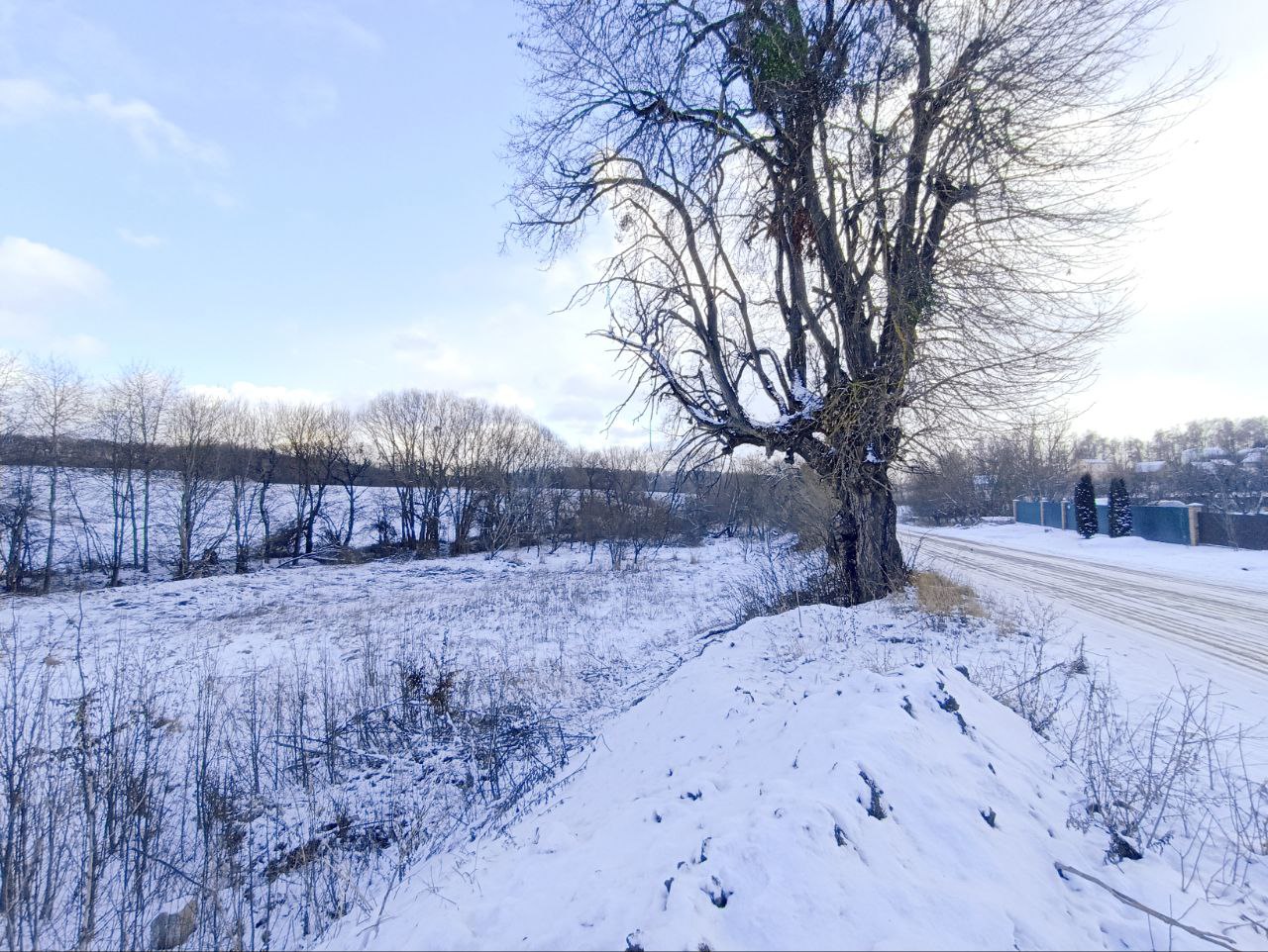 Ділянка фасадна, рівна, з мінімальним нахилом (з онієї сторони центральна дорога, з іншої струмок - при бажанні можна вирити собі ставочок).