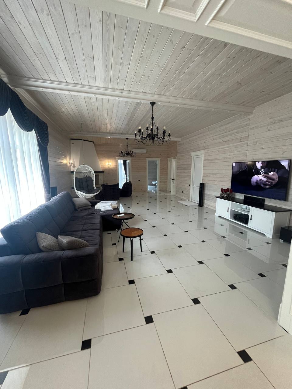 Шикарна зона відпочинку біля каміна. Шикарна зона відпочинку біля шедеврального каміну. Вишукана, велика кухня. Вбудована кухня із справжнього дерева у білих тонах.