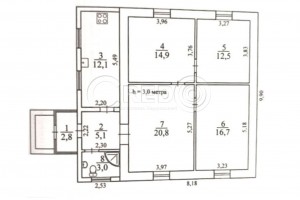 Планування об'єкту: - будинок має 4 житлові кімнати: 20.8 + 16,7 + 14,9 + 12,5 м.кв. - обладнана кухня 12 м.кв. - санвузол з душовою кабіною. - передпокій та скляне тамбурне приміщення. - високі стелі 3 м.