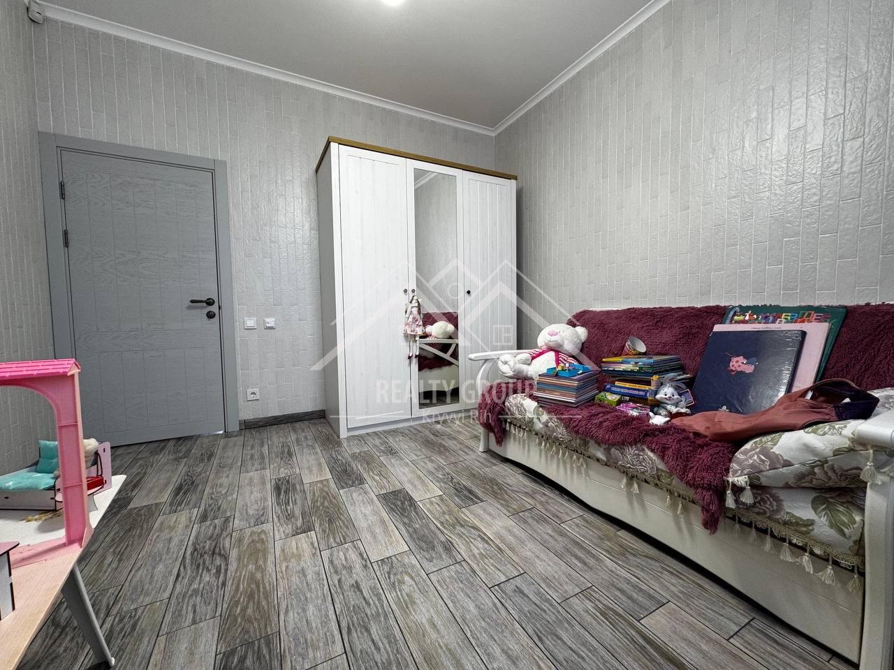 Дизайн виконаний у мінімалістичному стилі , має світлу кольорову гамму у стриманих тонах. Наповнення будинку якісними меблями та фірмовою, сучасною технікою, які залишаються новим власникам.
