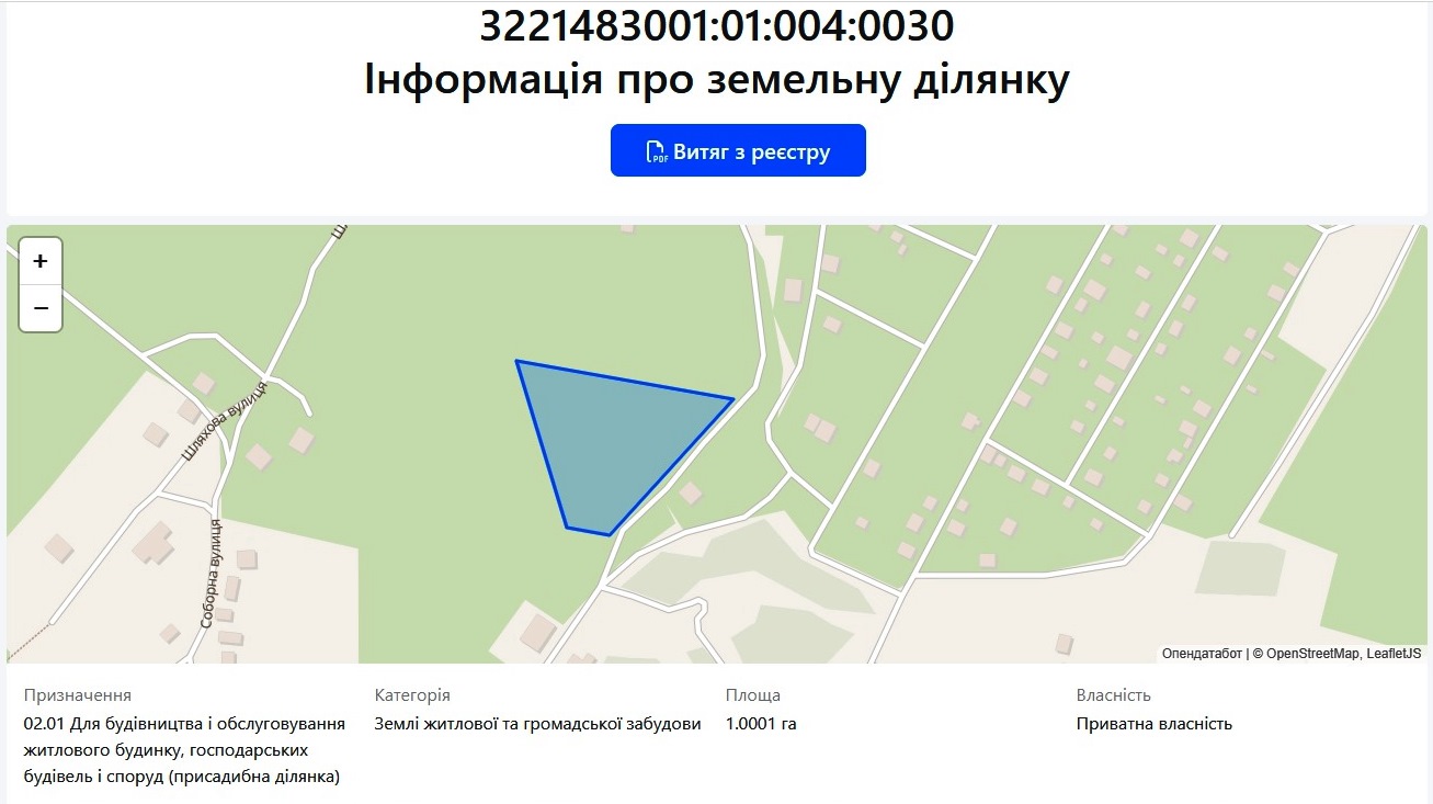 Кадастровий номер ділянки: 3221483001:01:004:0030