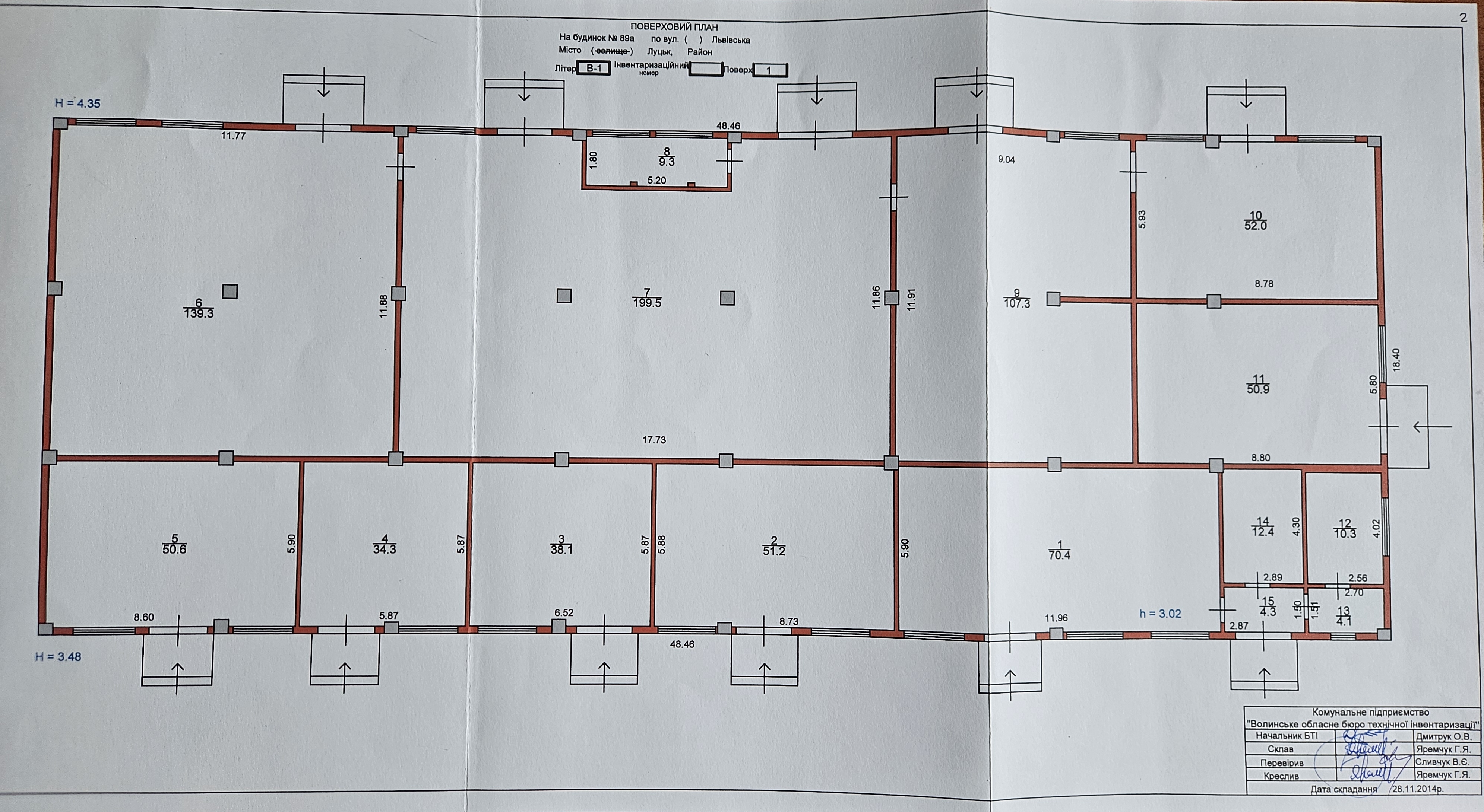 - висота в середині будівлі 3,5-4,3 м.,