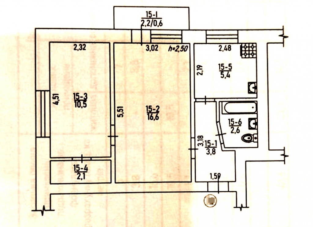 1 кімн., площа 26/16/6, поверх 2/2