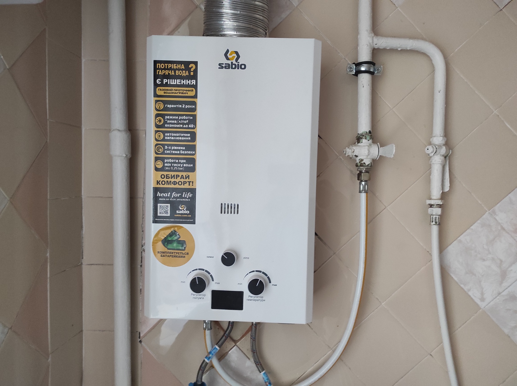 Індивідуальне опалення та колонка на гарячу воду.