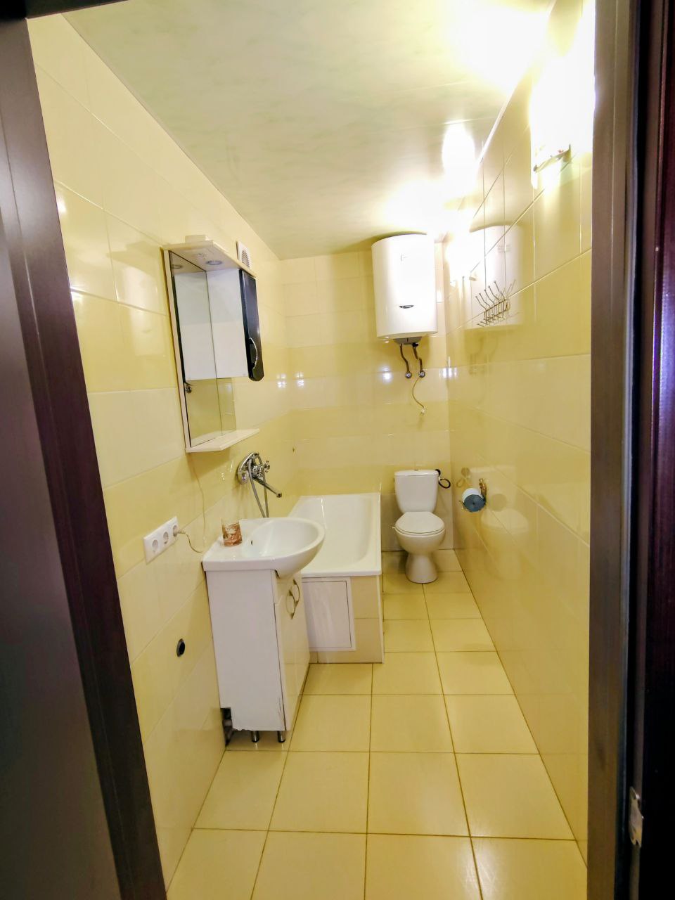 Сумісний санвузол у кахлі, встановлений бойлер, металопластикові вікна.