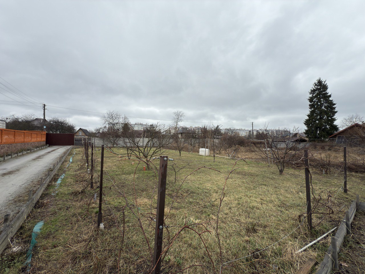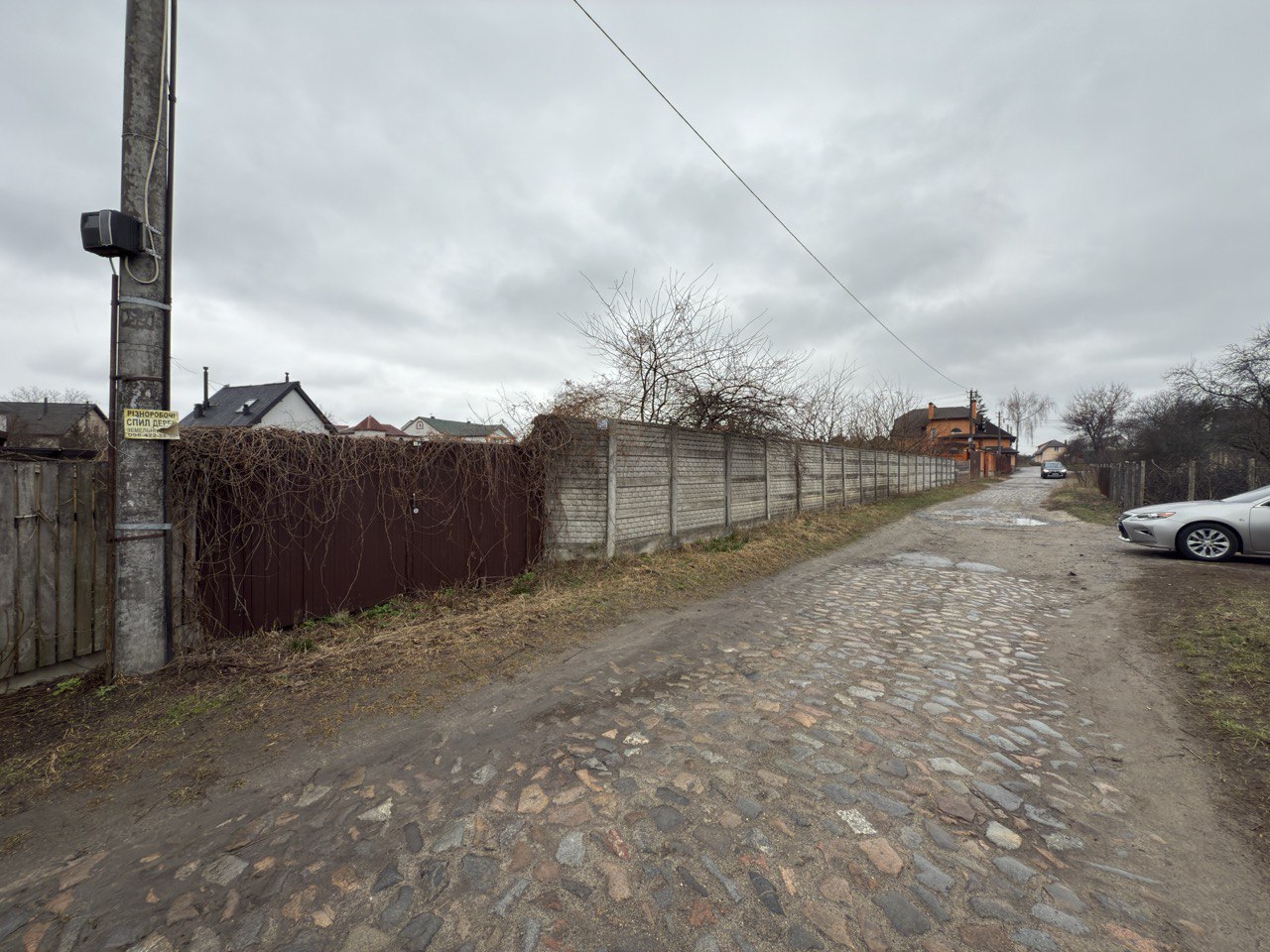 Ділянка складається з 3 ділянок (продаються разом), рівна, знаходиться на закритій вулиці, на вулиці 3 будинки, відкатні, автоматичні ворота, огороджена бетонним забором.