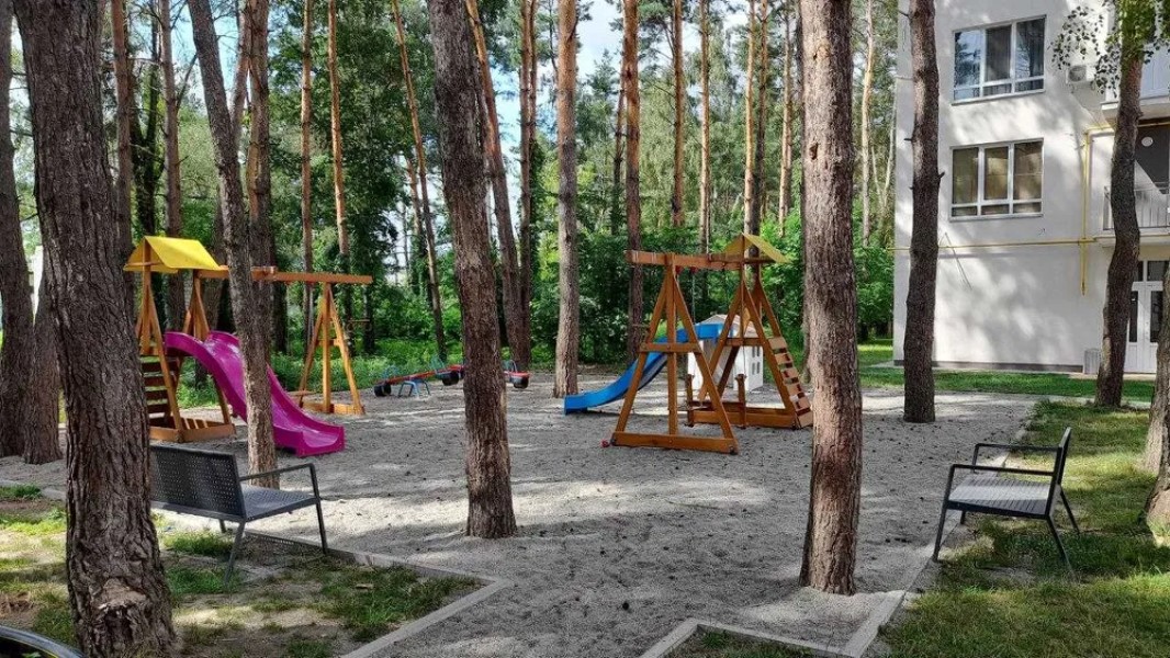 Гарний район в найближчому селищі під Києвом, навколо ліс і парк, розвинена інфраструктура. В пішій доступності дитячий садок, школа, магазини, аптека Подорожник, гіпермаркет Фоззі. Продуктовий маркет ЛотОК, BOX маркет, дитячий коворкінг. Тенісний корт, спортивна площадка.