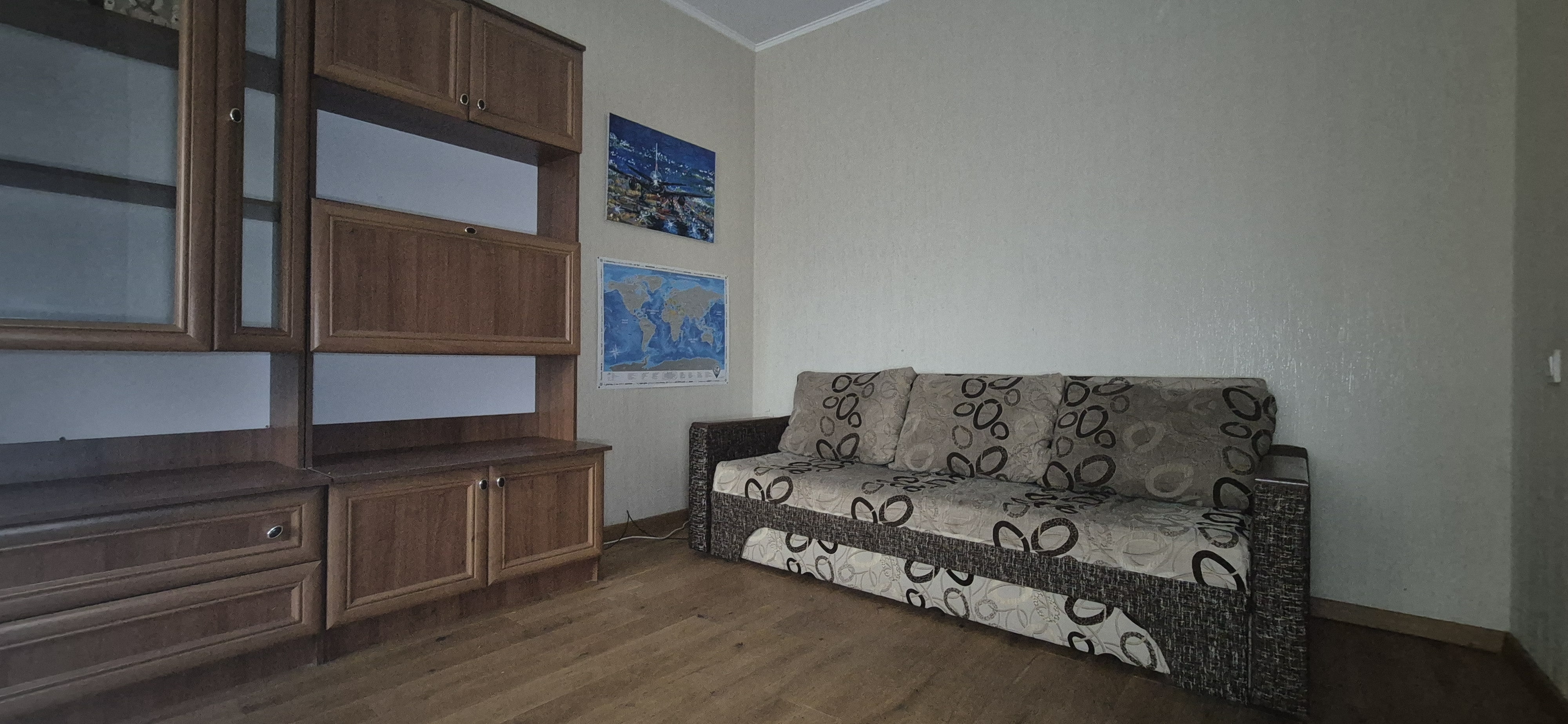 Планування: Кімната (ліжко двоспальне, диван розкладний, шафа, стінка меблева, стіл робочий); Кухня (вбудований гарнітур, газова поверхня, витяжка, мийка, холодильник, газовий котел, обідній стіл, диван) Сансузол суміщений (ванна, пральна машинка, умивальник з тумбою та дзеркалом, унатаз) Лоджия засклена та обшита дерев’яною вагонкою. Вид на ліс. Дуже тихе місце. Коридор (шафа-пенал, полички для зберігання сезонного одягу та взуття, дзеркало). Квартира обладнана газовим котлом та керамічними обігрівачами, домофон, інтернет. Лічильники на газ, воду та електрику. Тамбур на 2 квартири. В під’їзді грузовий ліфт.