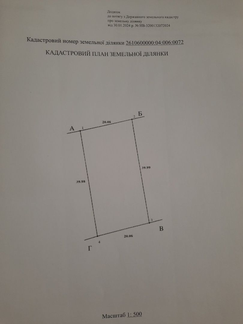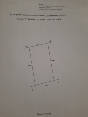 Площа ділянки - 0,08 га, для будівництва та обслуговування житлового будинку.