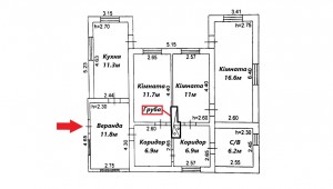 Матеріал будівництва: Стіни з червоної цегли, дах- шифер, склопакети. Житловий стан. Потребує часткового ремонту.