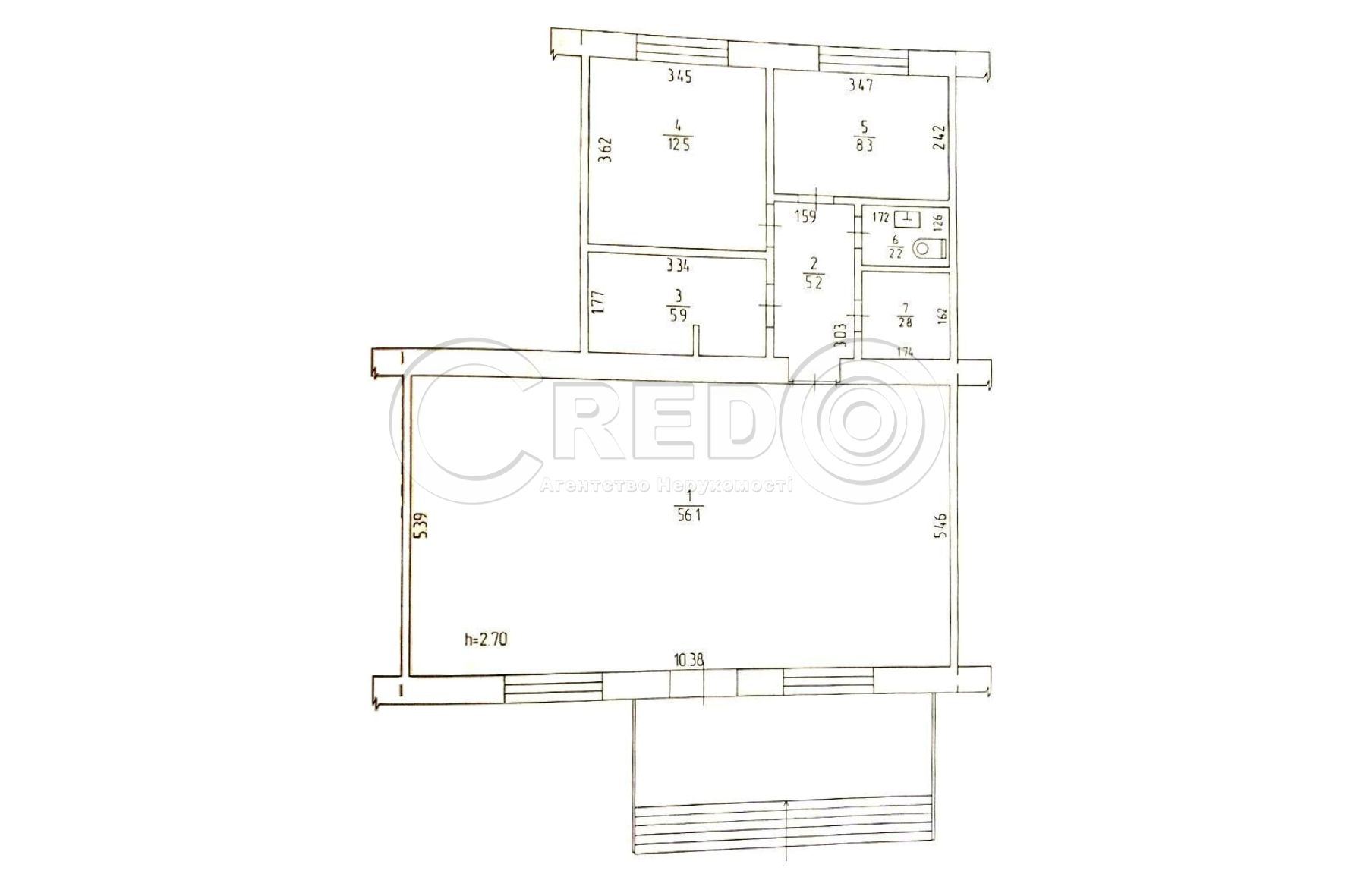 - Висота стелі – 2.70м.