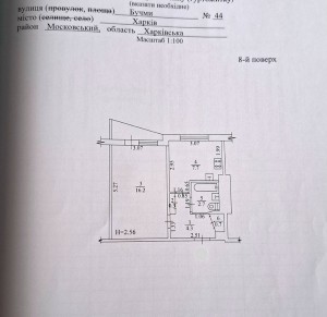 1 кімн., площа 32/17/7, поверх 5/9