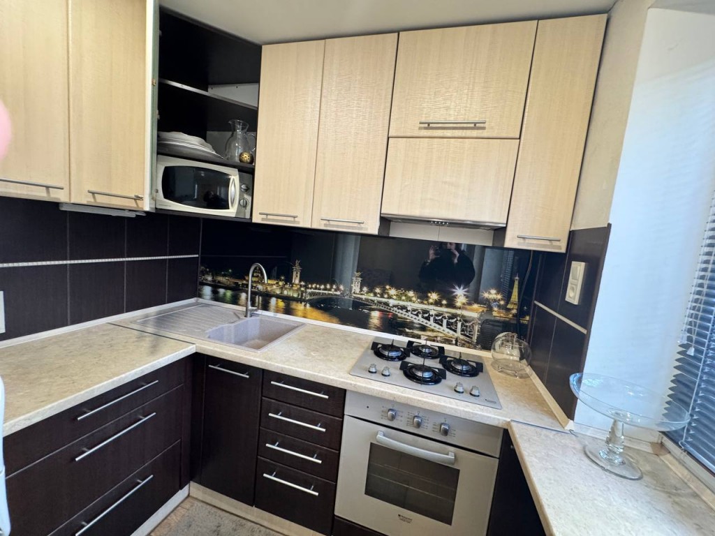 Здам переплановану 3-кімнатну квартиру в 2-кімнатну з кухнею-студією (апартаменти з двома окремими кімнатами) на м-н Алмазний (поряд зупинка громадського транспорту «Алмазна») по вул. Дорошенка.