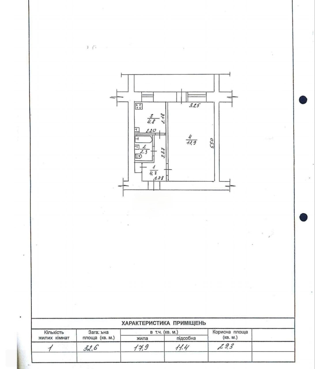 Загальна площа: 32.6 кв.м