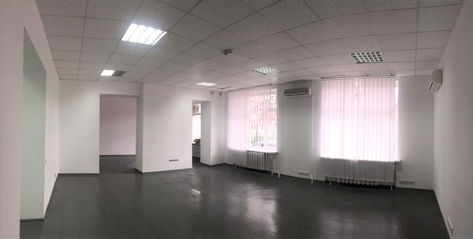 Общая площадь: 272м ( разбито на кабинеты). Характеристика помещения: - новый офисный ремонт, - промышленный линолеум, - подвесные потолки, светильники, - обои под покраску (окрашены в белый цвет), - установлены новые м/п окна, - установлены кондиционеры, - мощность электричества 30кВт, - установлены счетчики на воду, электричество, отопление, - парковка, - фасадный, а также служебный вход, - много места для рекламы. Цена одного квадратного метра 170грн./м. Общая стоимость аренды в месяц - 46240грн. + коммун. пл. Дополнительно можно арендовать гараж на 4 машино-места или использовать помещение под склад(отапливается). Отличное месторасположение, рядом остановка общественного транспорта, супермаркет "Союз", кафе Гриль Паб, Credo-Bar, гостиница "Reikartz". Отлично подойдет под Call-центр, IT-компани., банк, и др.