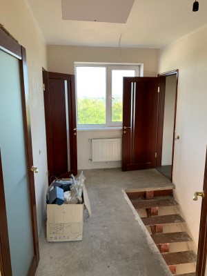 Окна металлопластиковые. Отопление автономное электрическое (15 кВт, один контур). Теплый пол в кухне-столовой. Горячая вода от двух бойлеров. Электричество 3 фазы, 25 кВт. Проводка медная. Вся разводка электрики выполнена. Вводы под кондиционеры. Вода централизованная, счетчик на воду. Канализация дренажный септик, глубина 6 м. Трубы воды - пластик, канализация - пластик.