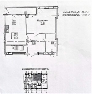 Загальна площа 138,36 кв.м., житлова площа 61,47 кв.м.