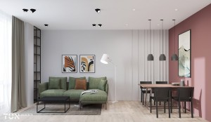 Загальна площа – 50 кв. м: зона кухні 6,1 кв.м з виходом у вітальню 18,1 кв.м, ізольована спальня - 9,2 кв.м, санвузол 5,4 кв.м, лоджія 8 кв.м.